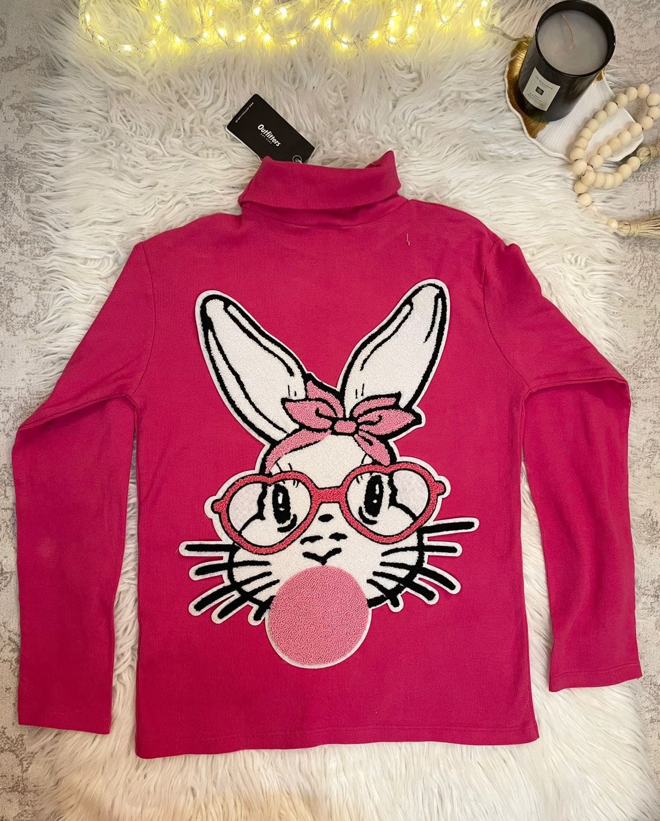 Pink Turtleneck Shirt with Bunny & Mama Patch – Cozy Winter Wear Celebrating Mama & Child Love